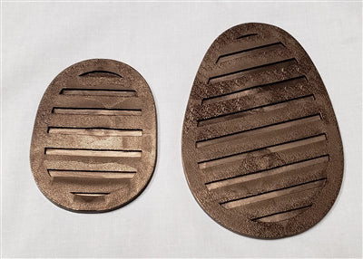 The black deluxe gripper material is the same material used on the Olson brand of shoes. Order includes two gripper discs, as shown in photo. They will likely need to be trimmed to size, but please indicate your shoe size and we'll correspond with available material. These are meant to be glued on shoe, no Velcro backing.